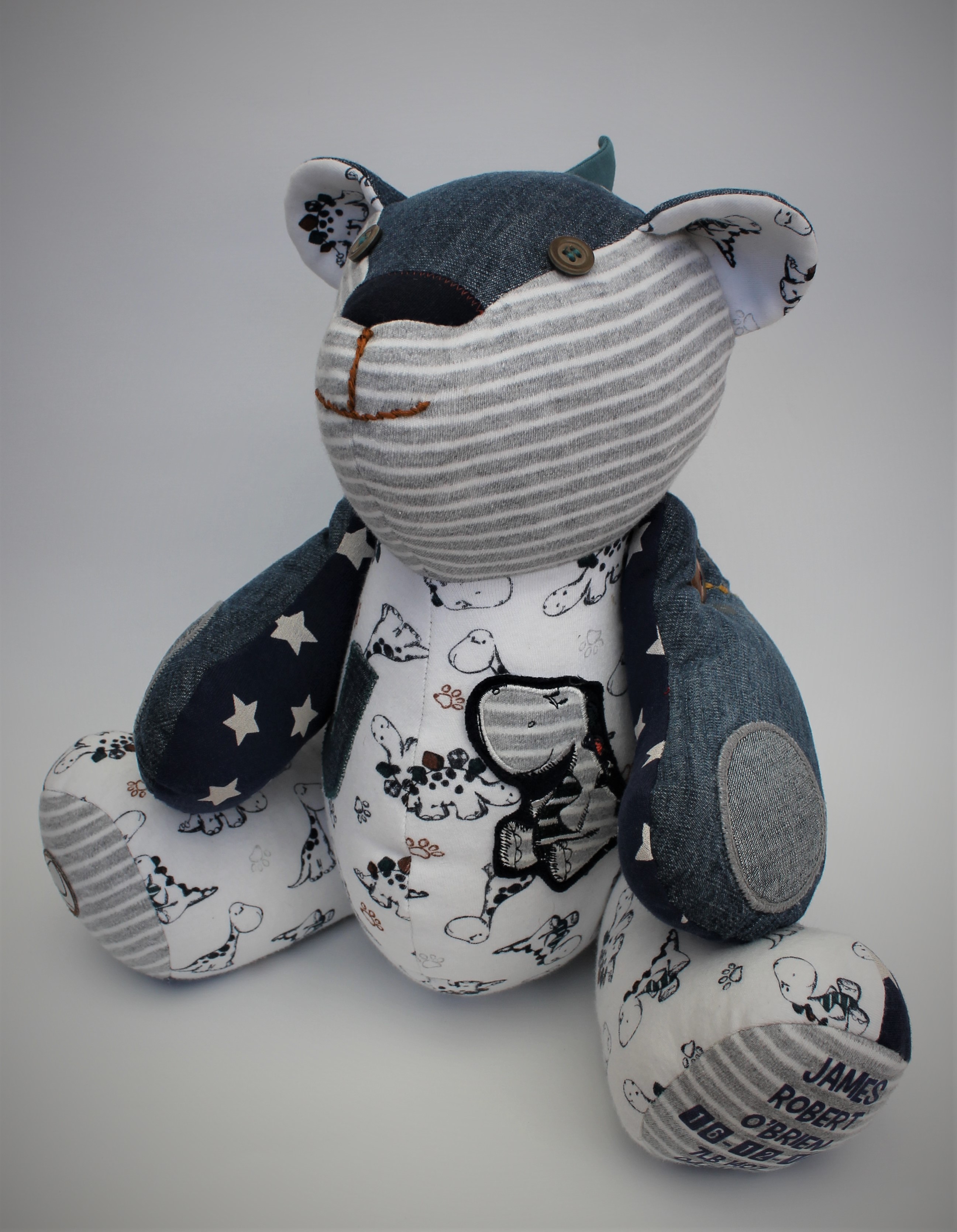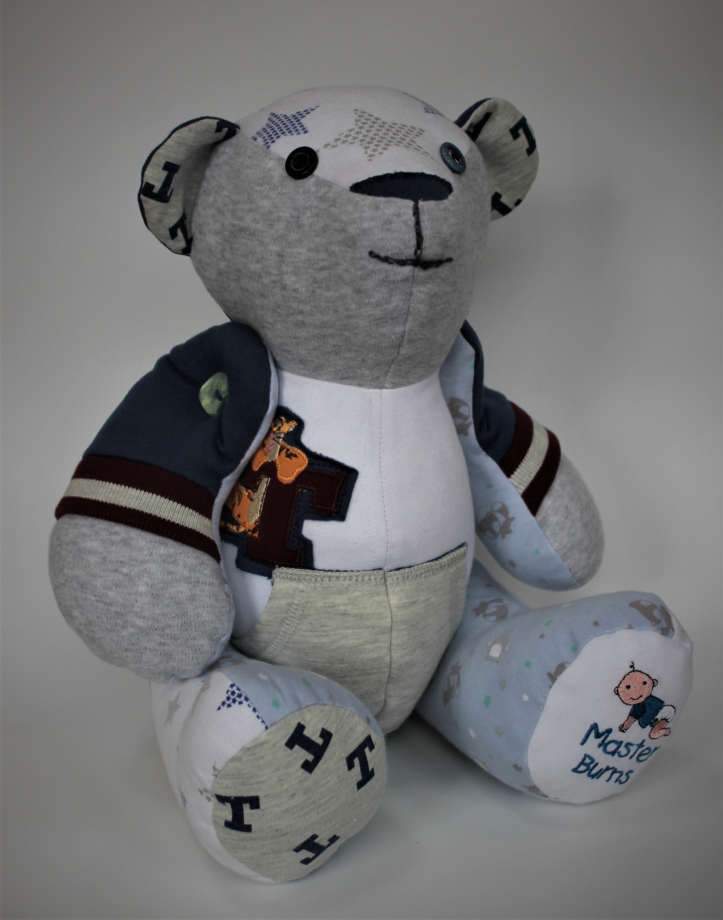 Our Baby Clothes Memory Bears are lovingly made from your child’s first clothes. Each piece is made from around 4-6 pieces of newborn clothing.